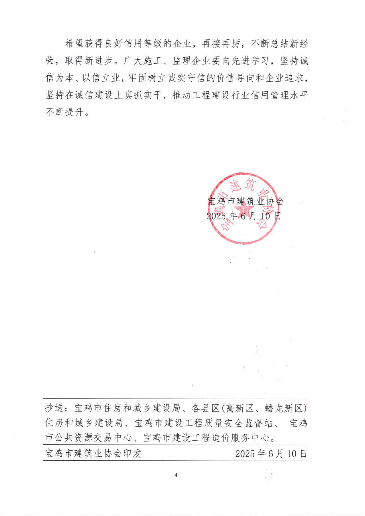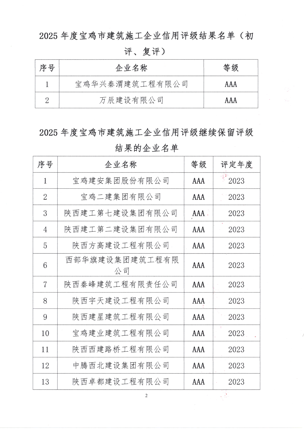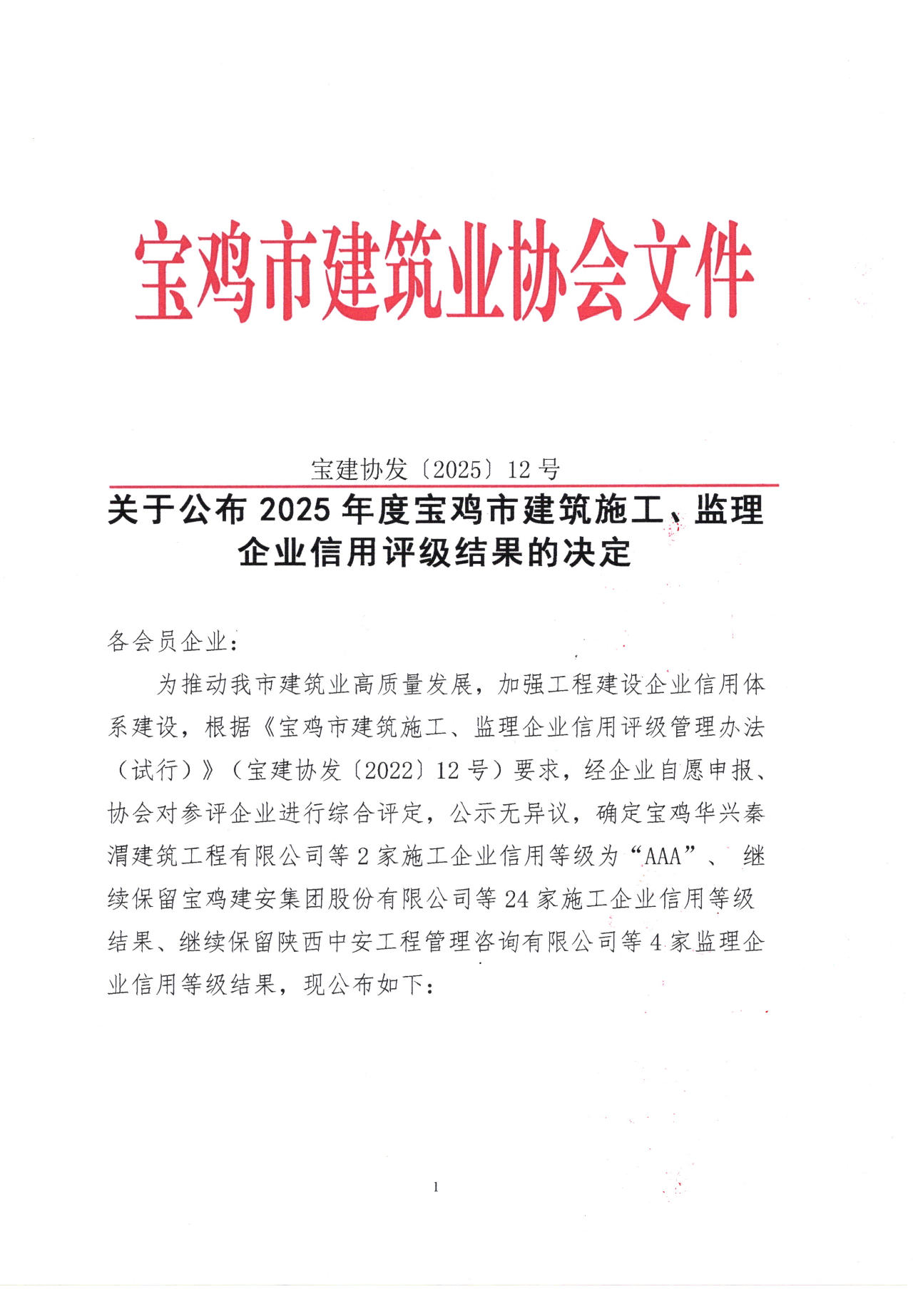 6月10日,宝鸡市建筑业协会发布了《关于公布2025年度宝鸡市建筑施工、监理企业信用评级结果的决定》(宝建协发【2025】12号),我司继续保持监理企业信用评价aaa等级。