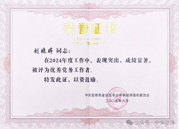 公司工会副主席、办公室主任刘晓婷获金台区“优秀党务工作者” 表彰 | |